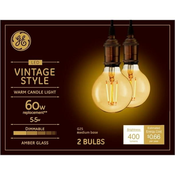 Ge Vintage Style Led Light Bulbs Globe Bulb Shape Amber Glass Finish Warm Candle Light 60 Watt Equivalent Medium Base Dimmable 2 Pack Walmart Com