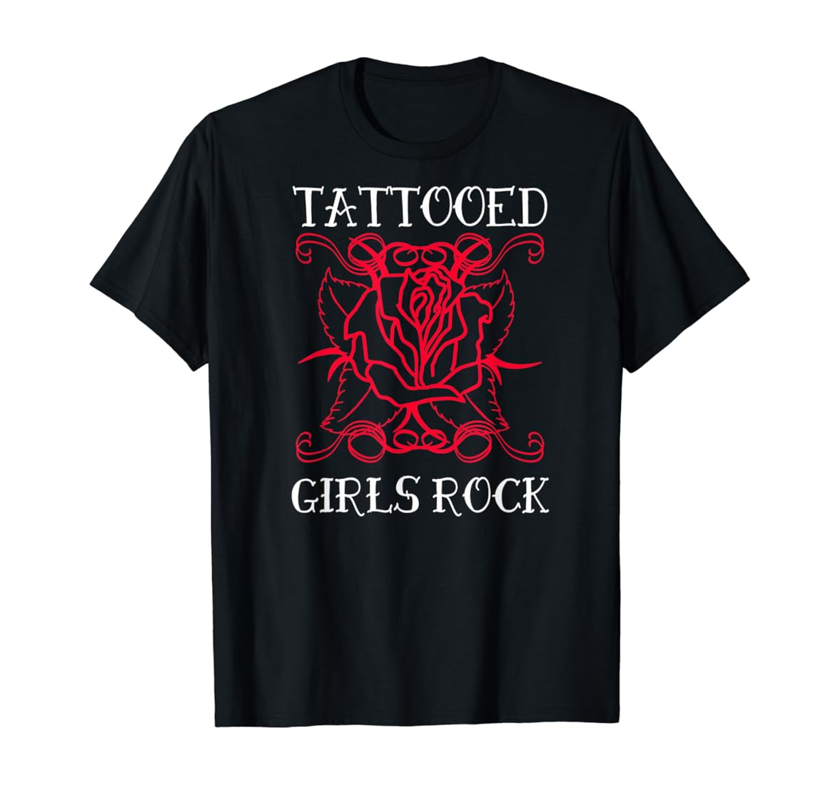 Amazon Com Tattooed Girls Rule Tatted Girl Power Old School Rose Meme T Shirt Clothing Shoes Jewelry